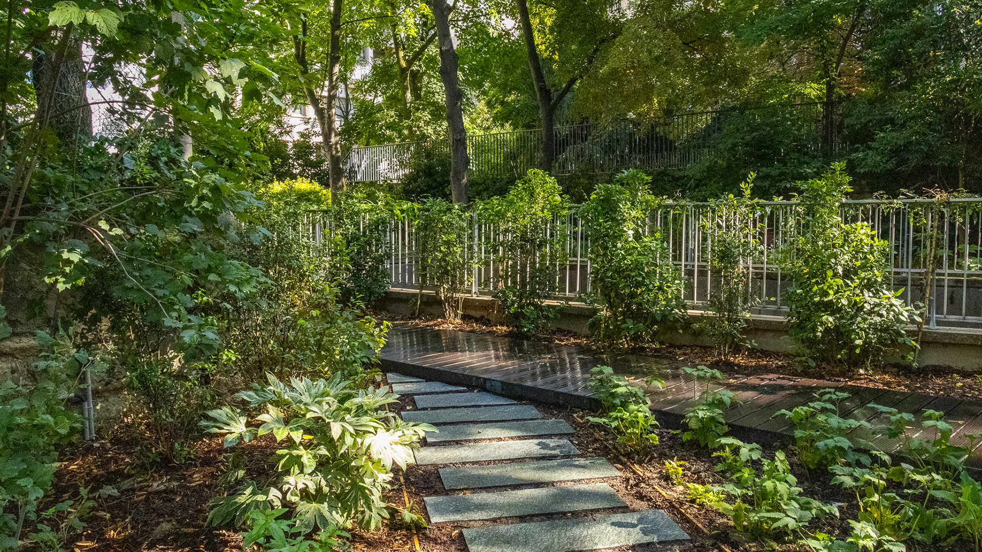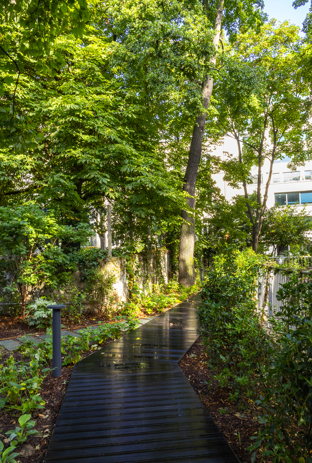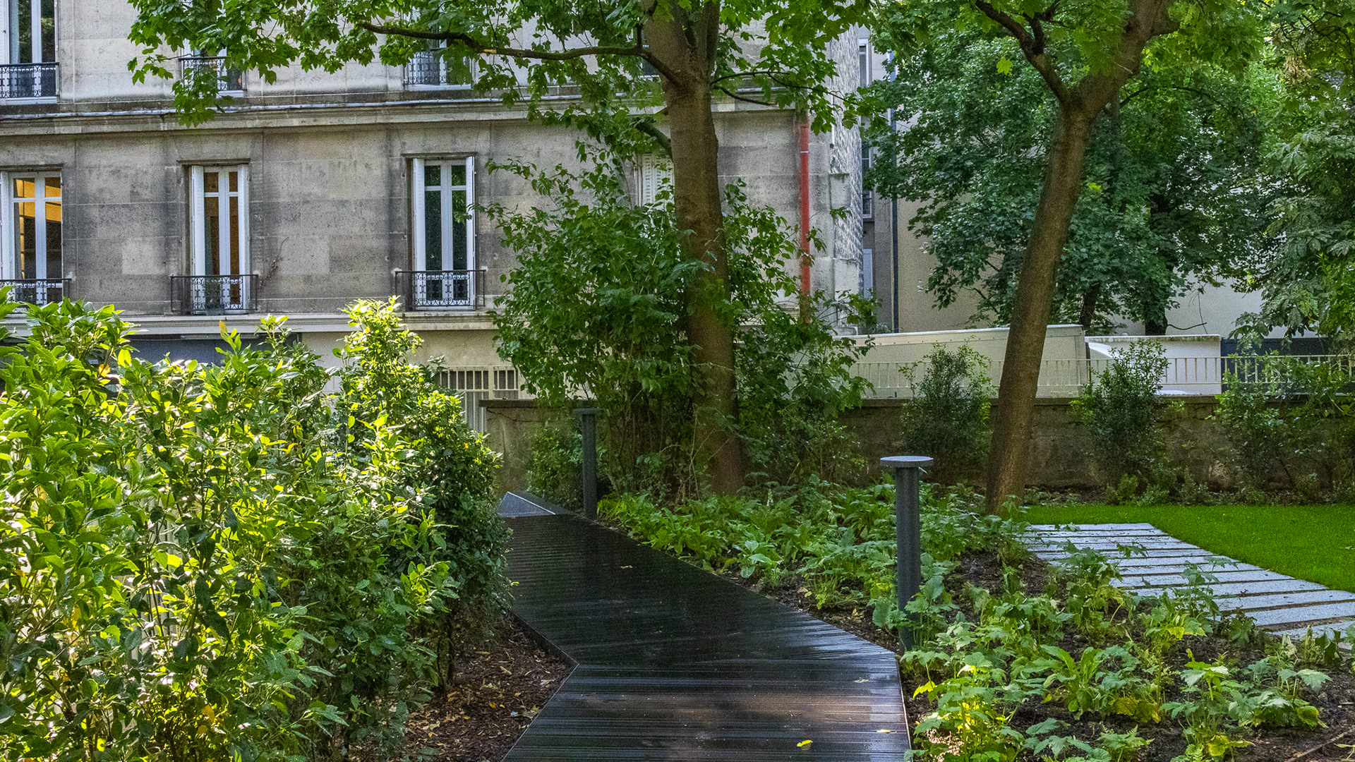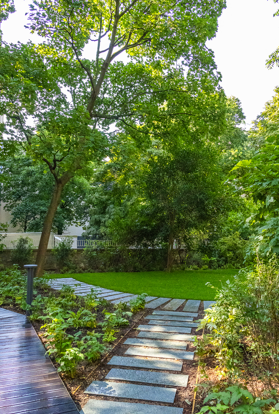 «Sous la structure arborée majestueuse, dans le silence et le secret du cœur d’îlot, on recompose l’écrin d’un jardin préservé.»
